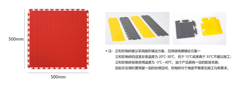 軟質(zhì)絕緣地板能夠?qū)⒚總獨立的地板快速拼裝成整體地面,專利型鎖扣結(jié)構(gòu)連接能力更強,可承受叉車的來回碾壓。施工過程中無需膠黏劑等材質(zhì),具有施工簡單快速、色彩絢麗、美觀大方、可移動性強、可重復(fù)使用等特點。